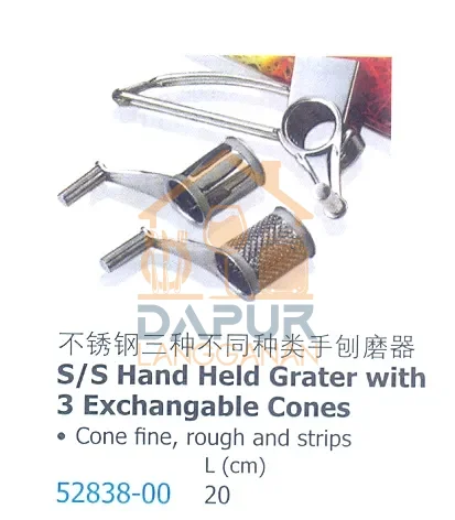 Stainless Steel Hand Held Grater With 3 Exchanger Cones